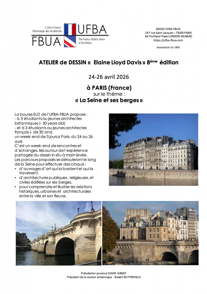 THE 8TH ELAINE LLOYD DAVIS DRAWING WORKSHOP BURSARY 24-26 April 2026 in PARIS On the theme of : « The river Seine and its banks»